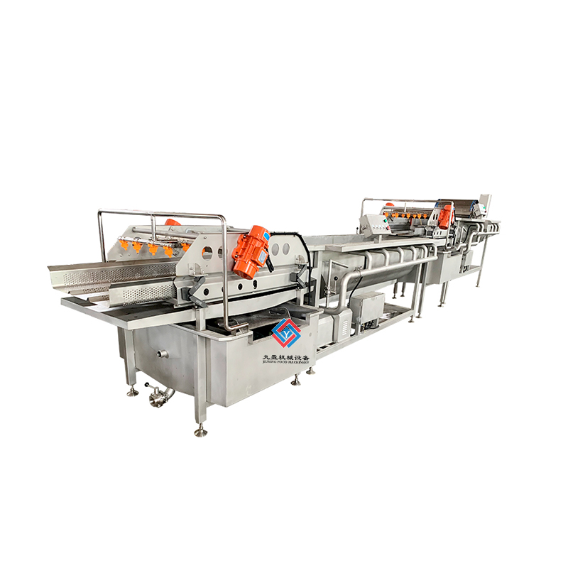 凈菜加工成套生產(chǎn)線是針對多種的蔬菜進(jìn)行清洗和加工處理的,可以將蔬菜表面的泥土進(jìn)行清洗干凈,還能夠?qū)κ卟诉M(jìn)行農(nóng)殘?zhí)幚恚梢詫⑹卟说霓r(nóng)藥進(jìn)行分解,提升蔬菜的品質(zhì)程度,通過清洗之后的蔬菜輸送到震動篩進(jìn)行麗水處理,能夠?qū)⑹卟松洗蟛糠值乃譃r干,之后輸送到風(fēng)干設(shè)備上可以將蔬菜的表面水分更加充分的蒸發(fā),之后再進(jìn)行整理過后可以進(jìn)行真空包裝處理,經(jīng)過真空包裝處理之后的蔬菜可以延長保鮮時(shí)間,建議填充質(zhì)量的氮?dú)饪梢允贡ur效果好。